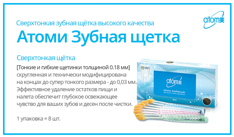 Зубная щётка Атоми. Вкладка с описанием от производителя.